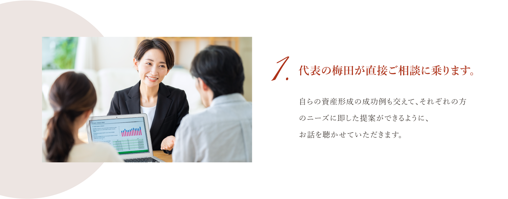 自らの資産形成の成功例も交えて、それぞれの方のニーズに即した提案ができるように、お話を聴かせていただきます。