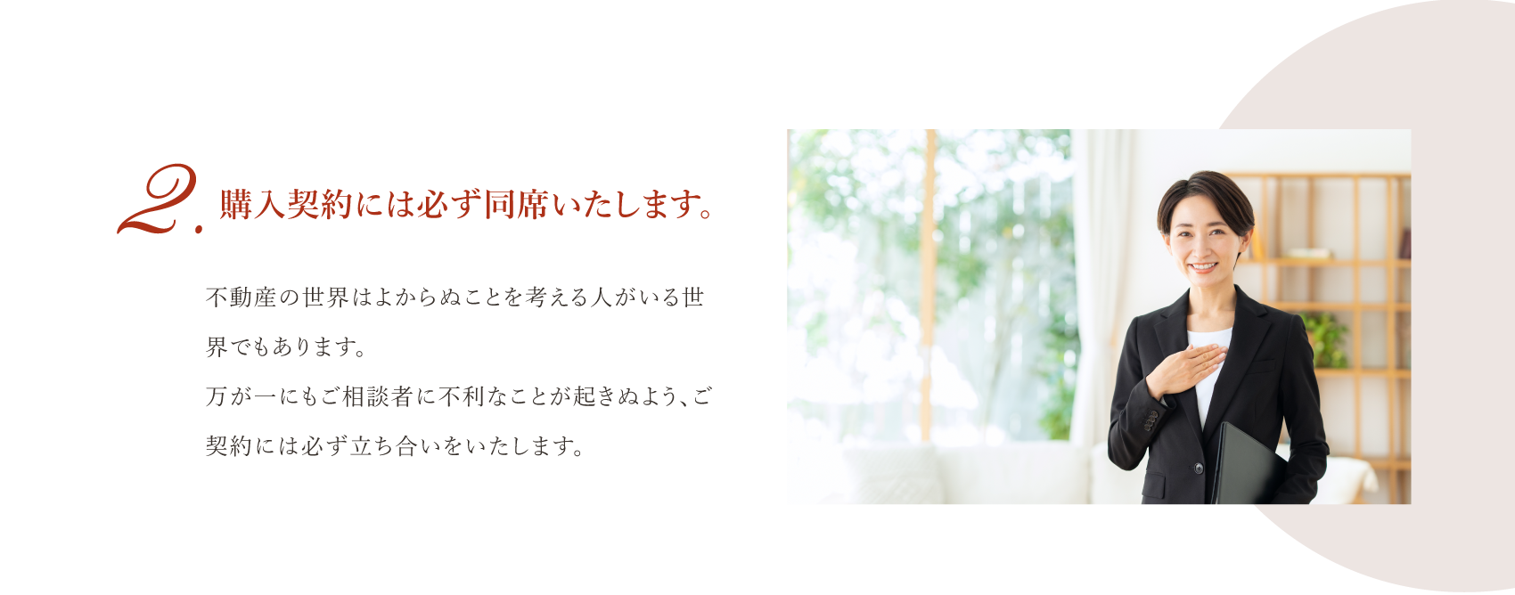 万が一にもご相談者に不利なことが起きぬよう、ご契約には必ず立ち合いをいたします。