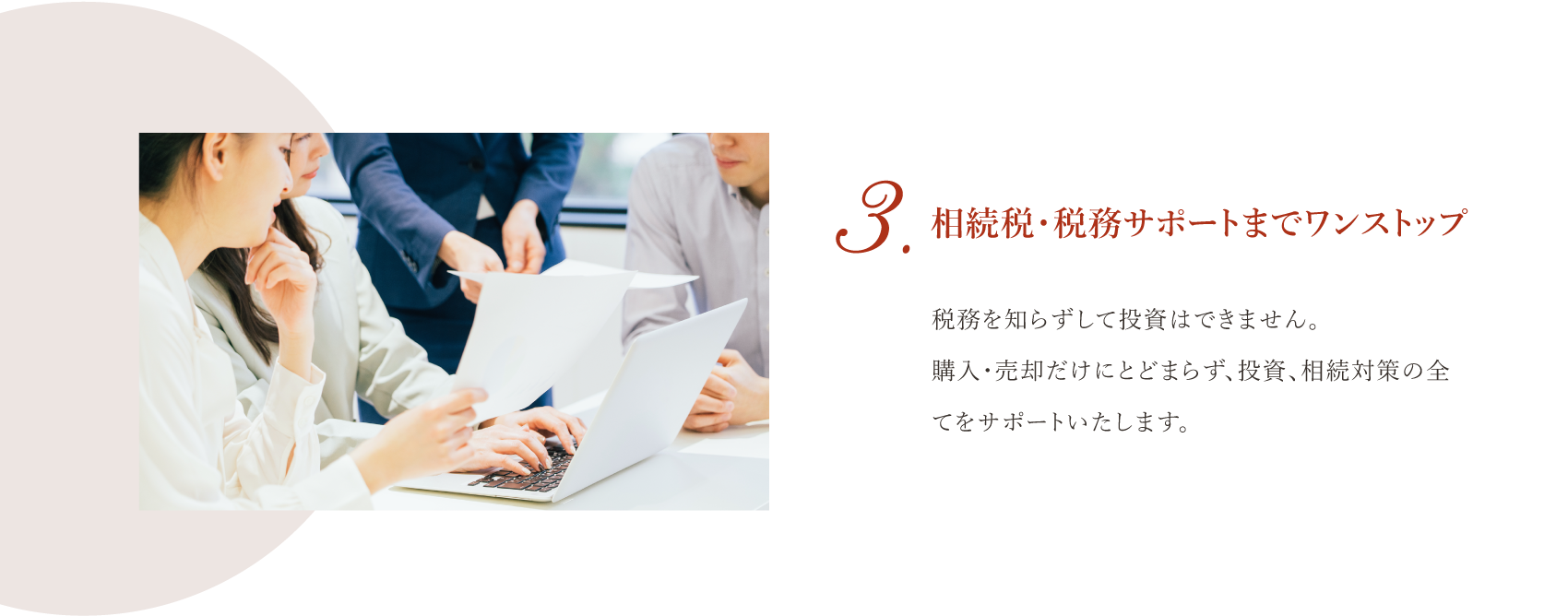 購入・売却だけにとどまらず、投資、相続対策の全てをサポートいたします。